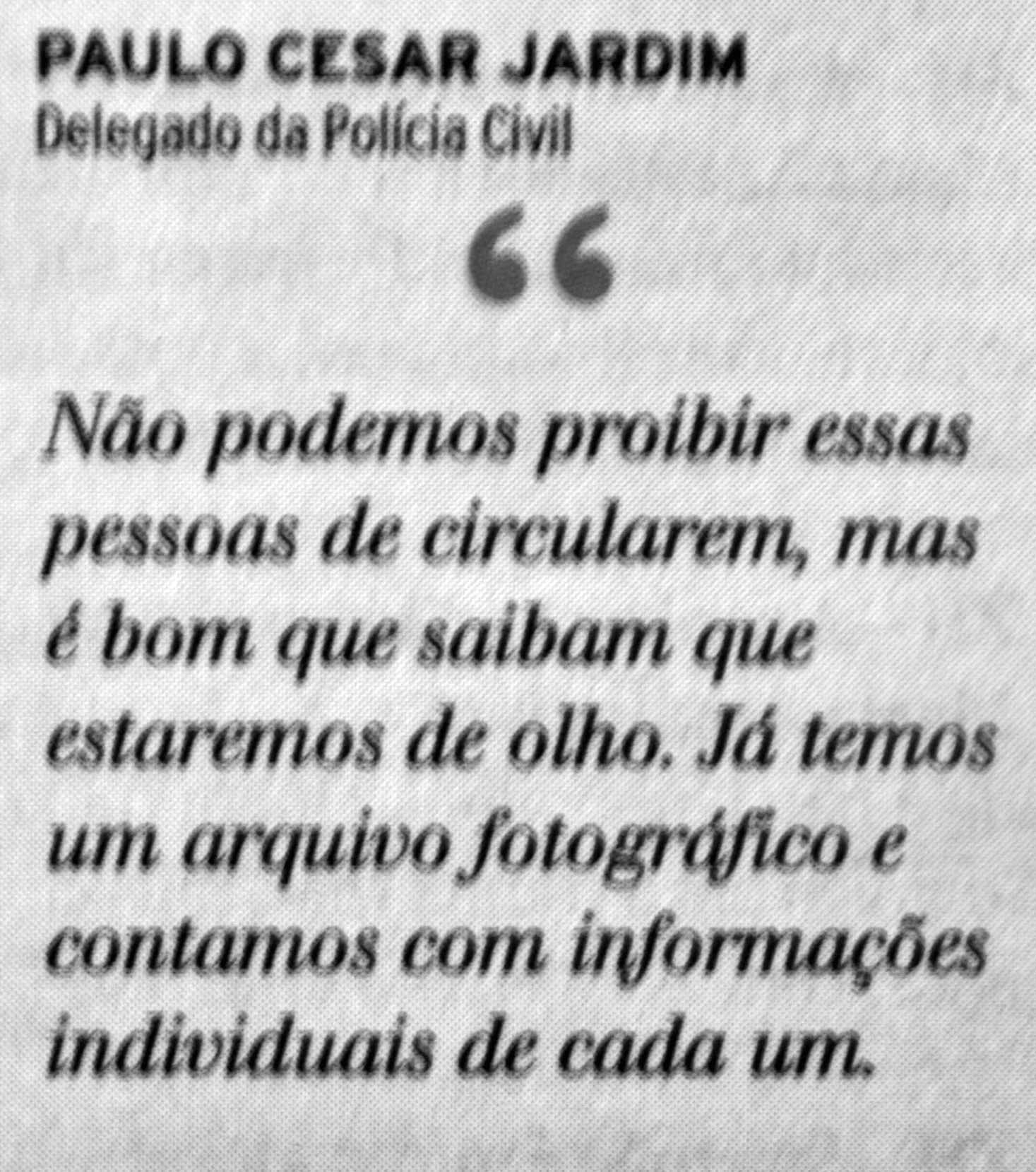 Mas por que jovens em uma praça me incomodariam? Por que sua alegria me incomodaria? O que me causa desconforto em saber que jovens e adultos parecidos comigo bebem cerveja na calçada? Eu não os conheço. Eu não moro ali. E certamente não é com medo da confusão, medo de que se misturem comigo na leitura social. Eu consigo ver suas preferências estéticas e certamente não são as minhas. Isso eu posso perceber. Estou sempre limpo. Quer dizer... Seria possível não se importar, negando a legitimidade pela indiferença, mas não... Incomoda, inquieta, preciso dizer alguma coisa, não é possível compreender. Devem ser coisas de crianças ou loucos. Coisas de vagabundo, coisas de maconheiro, coisas de adolescente. De bixa. Talvez seja mais barato e não possam pagar. Na cidade baixa? Perto do centro?! Mas não é degradado? Pobre? Pessoas pobres!! Não tem criminosos? Homossexuais!! Como em todo lugar? Existem homossexuais em todo lugar?! Então deve ter drogas! Homossexuais e drogas!! Homossexuais drogados!!! Não? Mas não é na praça? Aquela coisa toda da natureza misteriosa, escuridão e medo do escuro. Medo do escuro na praça, medo de não saber. Noite escura. Bruxas. Pessoas do mal. Escuras. Negras. Sujas. Bandidos do mal. Escuros. Negros. Bandidos Negros! Deve ter bandidos negros!! Não? Não tem bandidos negros? São brancos? Já sei, bandidos brancos! Mas bandidos podem ser brancos? Não?!Como assim não há bandidos? Não contamina e não há bandidos?! Mas é sujo? É sujo, mas dá pra ficar?! Mas não tem lugar limpo? Pra que serve o lago? Pra nada? Então por que não tiram?! E os bêbados? Não podem me agredir? Me envolver numa briga? Os seguranças são suficientes? Não tem seguranças?! Mas nenhum segurança? Quais pessoas? As pessoas da praça?! Por que elas me ajudariam? Mas eu tenho que ajudar?! Não precisa? Ajuda quem quer? Mas quem quer ajudar?! Ah, não tem violência? Mas e se tiver? Como em todo lugar? Mas não tem violência em todo lugar?! Não? Não precisa ter medo? Medo de quê? Terça é melhor por quê? E por que as pessoas vão? Por nada?! O que tem na terça? Como assim, nada? Mas por que as pessoas vão na terça? Por nada? Por nada?! Então são jovens! Crianças não têm medo de nada!! Não são Crianças?! Crianças pobres? Pobres crianças negras! Pobres crianças negras abandonadas!! Rejeitadas!!! Menores abandonados!!! Não? Não é perigoso? Não é perigoso para as mulheres? Tem várias mulheres? Mulheres na praça?! Então são putas? Mulheres prostitutas na praça! Prostitutas pobres na praça!! Praças de prostituição!!! Então, por que não? Não?! Não são prostitutas? Por que tem mulheres, então? Que horas fecha? Não fecha?! Podemos ir pra outro lugar depois? Ficar lá? Mas não fecha?! Ah, ficar na praça? Mas quem cuida quando fecha? Ninguém cuida?! Todo mundo cuida? Mas moram lá? Então por que cuidam?! Quem paga? Ninguém paga? Por que não pagam?! Não tem dinheiro?! São pobres! Pobres negros!! Pobres negros bandidos!! Mendigos!!! Não?
